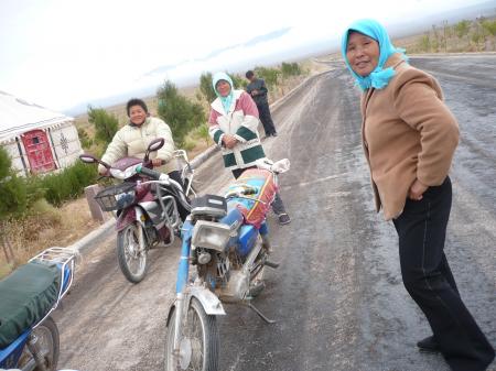 内モンゴルのお母ちゃんたちの手軽な移動手段はバイクです。